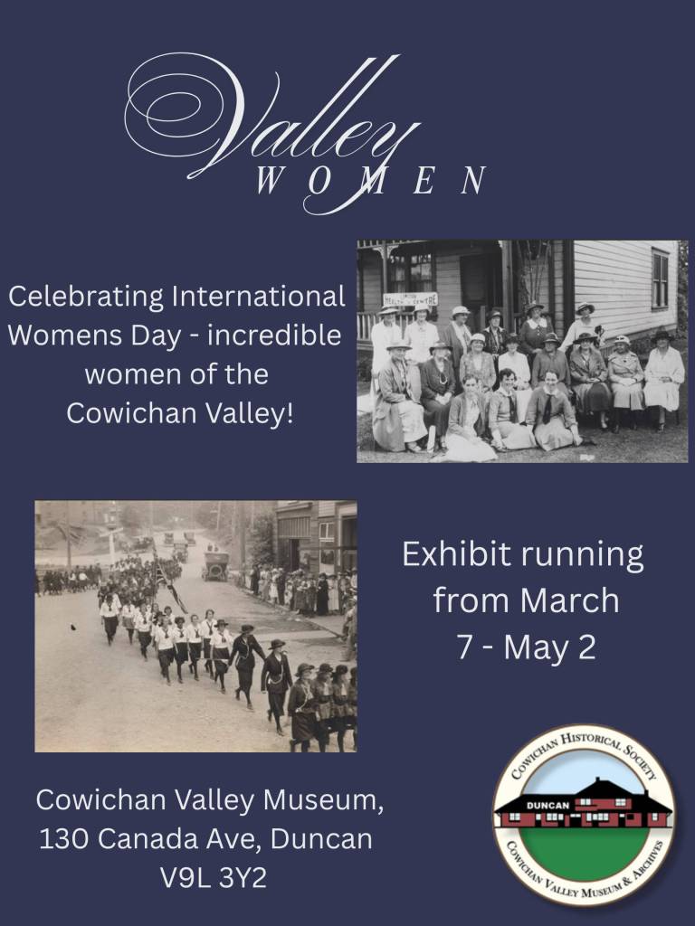 March 8 marks International Women’s Day with this year’s theme ‘Give to Gain.’ Frankie Swannell, in Grade 12 at Frances Kelsey Secondary School, is giving the community something to gain through her capstone project: an International Women’s Day exhibit at the Cowichan Valley Museum titled ‘Valley Women’, which will highlight Cowichan Valley women, their achievements, as well as their contributions to the community.